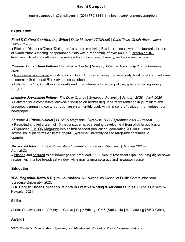 Digital and multimedia journalist and founder covering diaspora, culture, foodways, and investigative reporting for social impact.